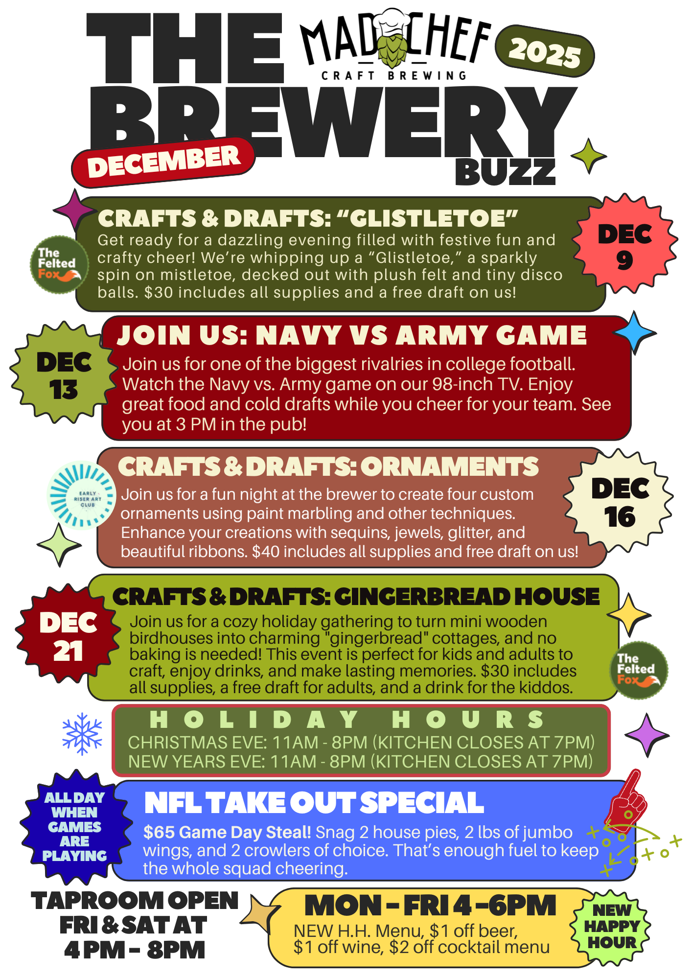 From craft nights with our neighbors to family-friendly afternoons for the kids, something is happening at Mad Chef. Good beer pairs best with good company, and a little creativity doesn’t hurt either.