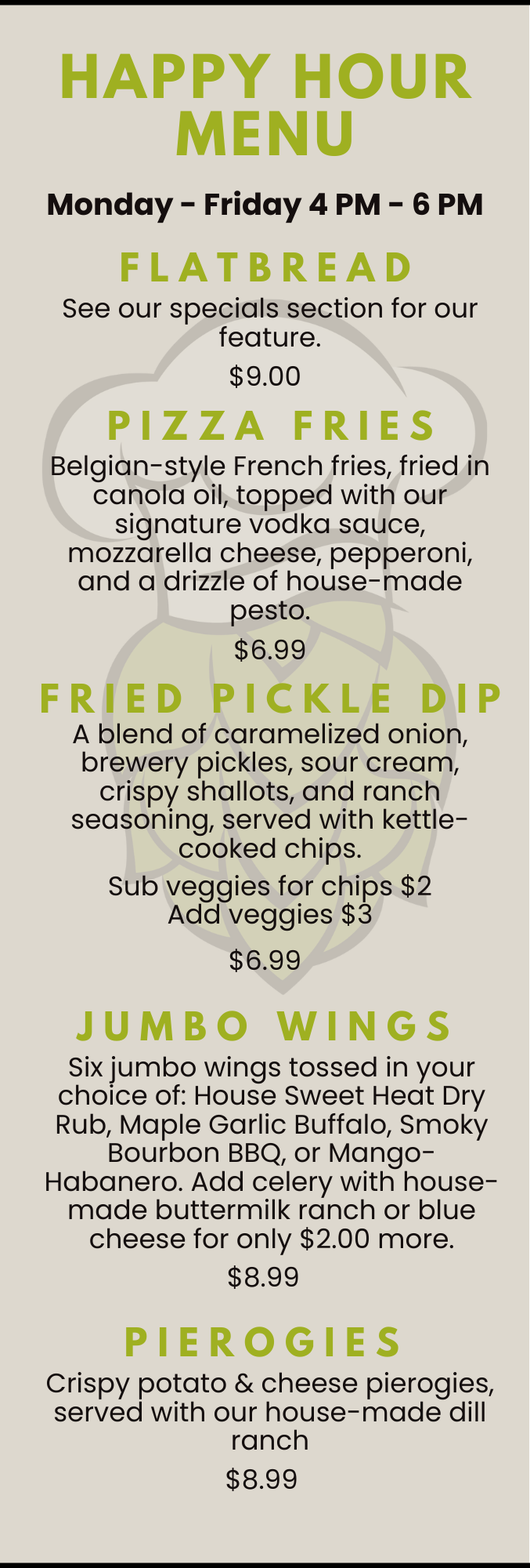 $1.50 OFF FULL POURS OF BEER | $1.00 OFF WINE | $2.00 OFF HOUSE COCKTAILS